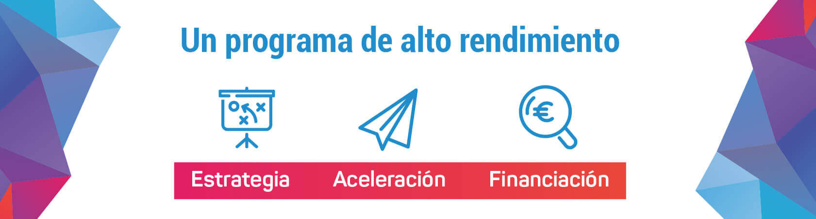 Este programa de alto rendimiento desarrolla, bajo la supervisión de un equipo de expertos, acciones basadas en la formación, tutorización, coaching, mentoring y apoyo en el acceso a financiación externa.